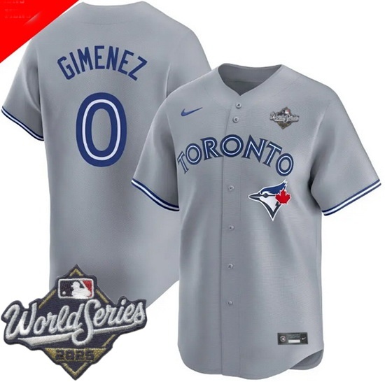 Home>MLB>2025 World Series>Toronto Blue Jays>Men Toronto Blue Jays 0 Andres Gimenez Cool Base Stitched Baseball Jersey Gray