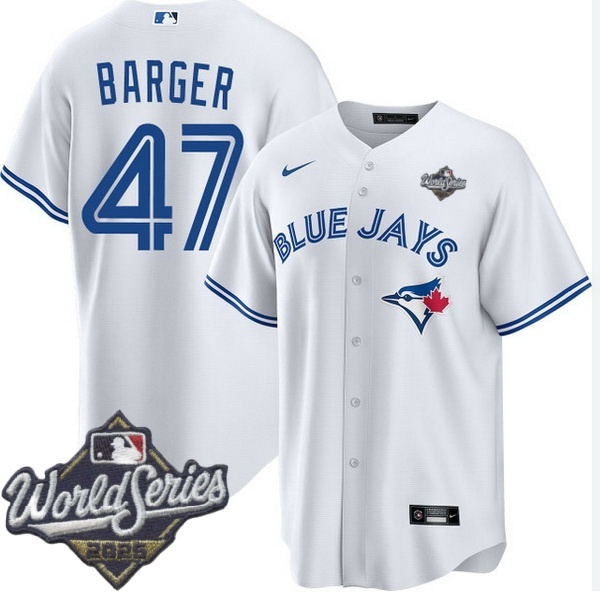 Home>MLB>2025 World Series>Toronto Blue Jays>Men Toronto Blue Jays 47 Addison Barger Cool Base Stitched Baseball Jersey White