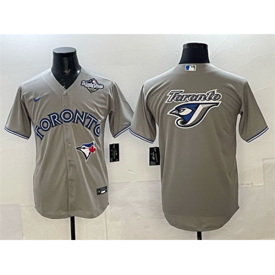 Home>MLB>Toronto Blue Jays>Men>Men Toronto Blue Jays Team Big Logo Grey 2025 World Series Cool Base Stitched Baseball Jersey