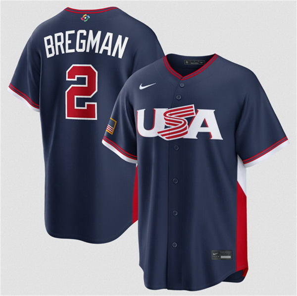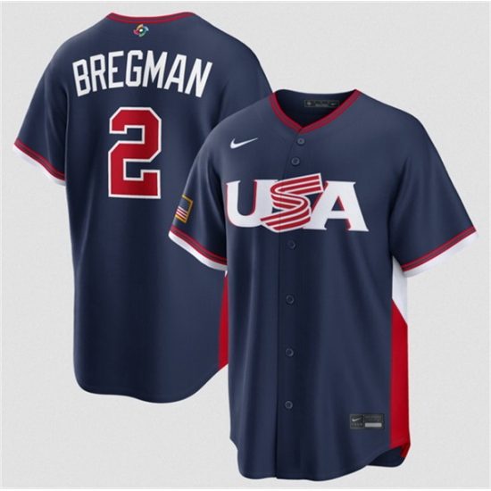 Home>MLB>2026 World Baseball>USA>Men USA Baseball 2 Alex Bregman Navy 2026 World Baseball Classic Road Stadium Stitched Jersey