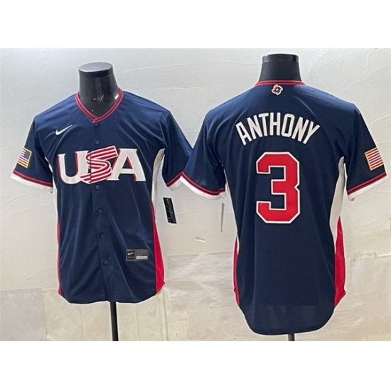 Men USA Baseball 3 Roman Anthony Navy 2026 World Baseball Classic Road Stadium Stitched Jersey