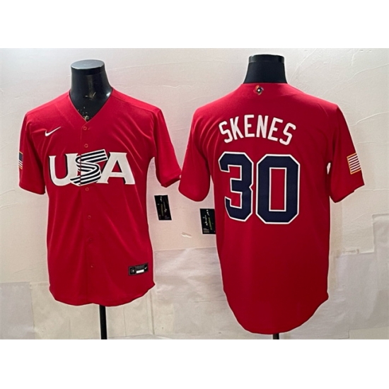 Men USA Baseball 30 Paul Skenes Red World Baseball Classic Stitched Jersey