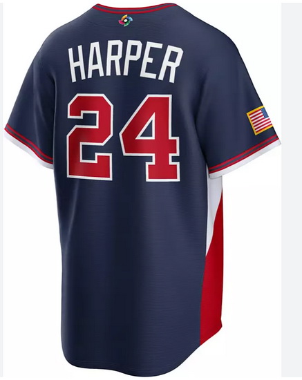 Men USA Baseball Bryce Harper Nike Blue 2026 World Baseball Classic Home Stadium Jersey