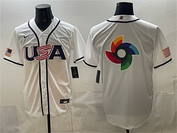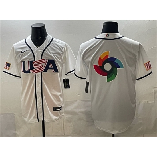 Men USA Baseball Team Big Logo White 2026 World Baseball Classic Home Stadium Stitched Jersey