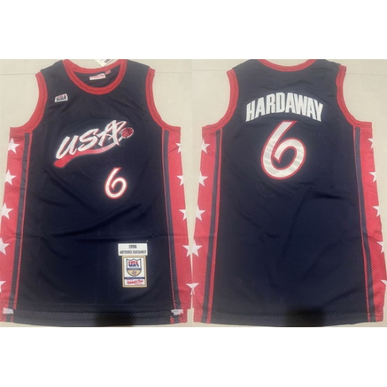 Men USA Basketball 6 Anfernee Hardaway Navy Stitched Jersey