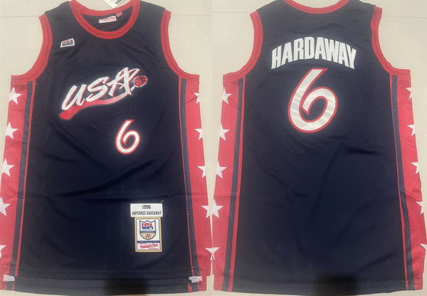 Home>NBA>New York Knicks>Men>Men USA Basketball 6 Anfernee Hardaway Navy Stitched Jersey
