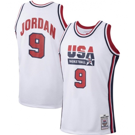 Men USA Basketball 9 Michael Jordan 1992 White Throwback Stitched Jersey