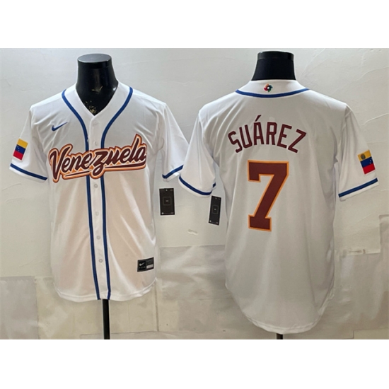 Home>MLB>2026 World Baseball> Venezuela>Men Venezuela Baseball 7 Eugenio Suarez White 2026 World Baseball Classic Home Stadium Stitched Jersey
