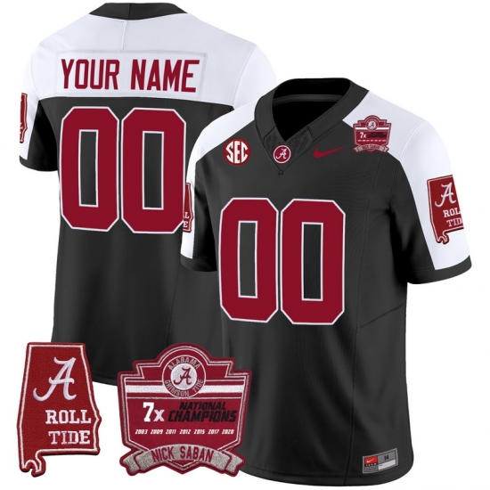 Men Women Youth Alabama Crimson Tide Nick Saban 7x Champions Patch Vapor Custom Jersey All Stitched Black Aternate