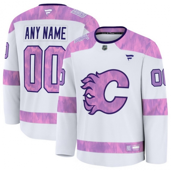 Men Women Youth Calgary Flames Fanatics White 2024 Hockey Fights Cancer Custom Practice Jersey