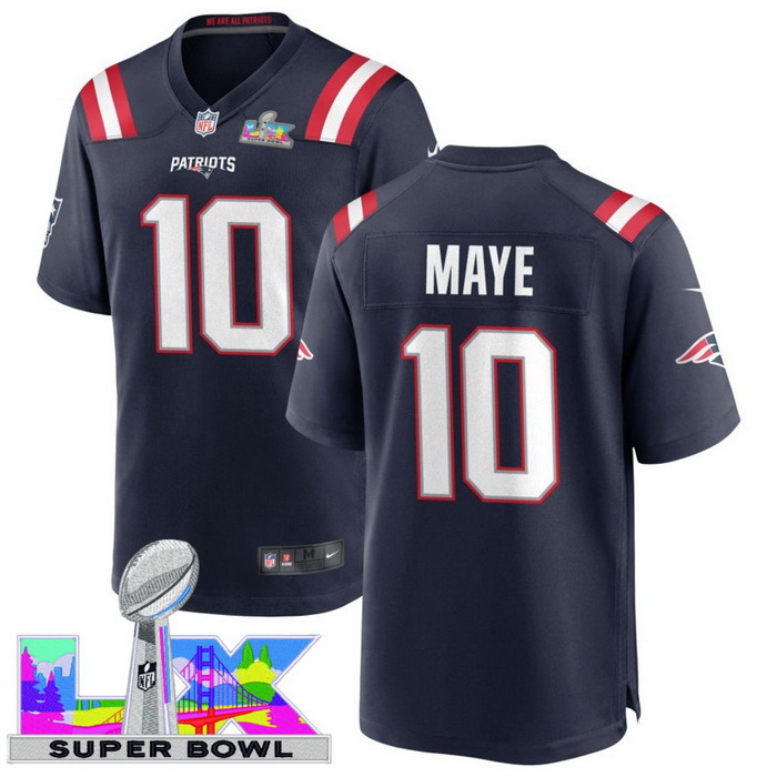 Men Women youth New England Patriots #10 Drake Maye 2025 2026 Super Bowl LX F U S E Stitched NFL Jersey Blue