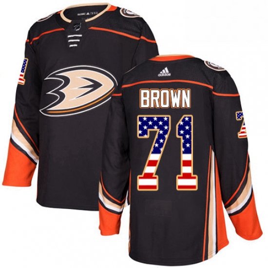 Home>NHL>Anaheim Ducks>Men>Mens Adidas Anaheim Ducks 71 JT Brown Authentic Black USA Flag Fashion NHL Jersey