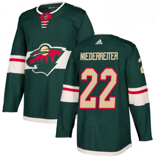Home>NHL>Minnesota Wild>Men>Mens Adidas Minnesota Wild 22 Nino Niederreiter Authentic Green Home NHL Jersey