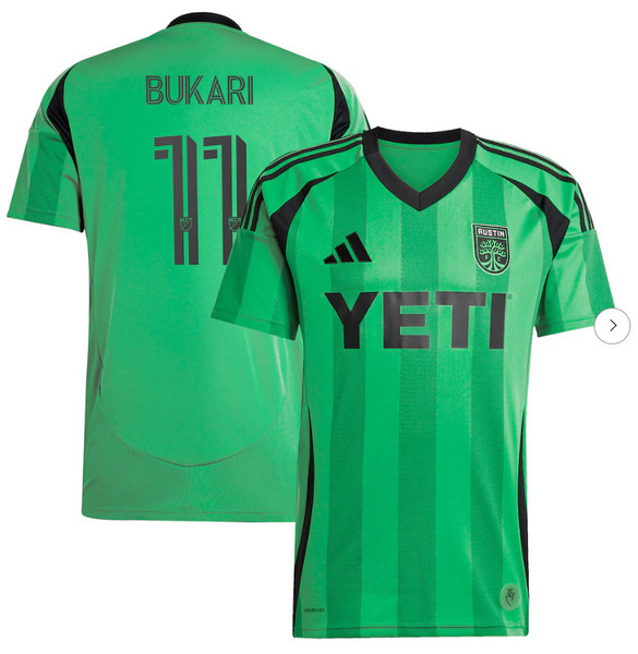 Home>Soccer>MLS Soccer Jerseys>Austin FC>Mens Austin FC Osman Bukari adidas Green 2025 The Heartbeat Kit Replica Player Jersey