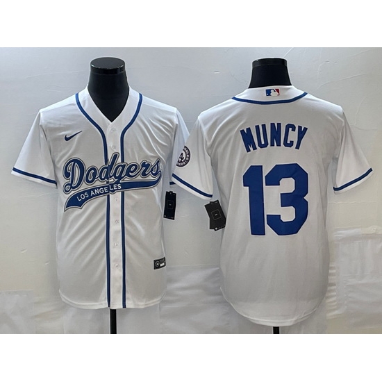 Men's Los Angeles Dodgers #13 Max Muncy White With Patch Cool Base Stitched Baseball Jersey1