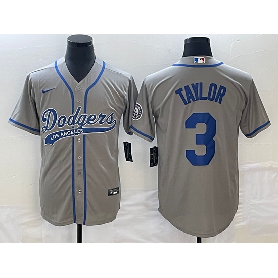 Home>MLB>Los Angeles Dodgers>Men>Men's Los Angeles Dodgers #3 Chris Taylor Grey With Patch Cool Base Stitched Baseball Jersey1