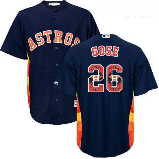 Mens Majestic Houston Astros 26 Anthony Gose Authentic Navy Blue Team Logo Fashion Cool Base MLB Jersey