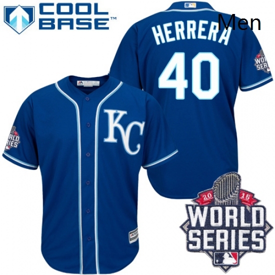 Mens Majestic Kansas City Royals 40 Kelvin Herrera Authentic Blue Alternate 2 Cool Base 2015 World Series Patch MLB Jersey