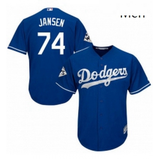 Home>MLB>Los Angeles Dodgers>Men>Mens Majestic Los Angeles Dodgers 74 Kenley Jansen Replica Royal Blue Alternate 2017 World Series Bound Cool Base MLB Jersey