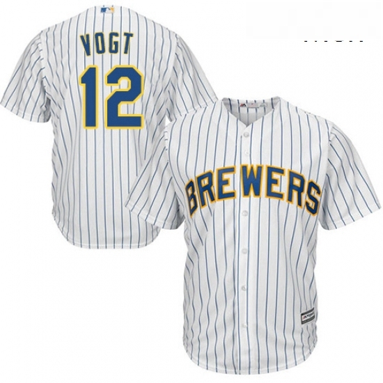 Mens Majestic Milwaukee Brewers 12 Stephen Vogt Replica White Alternate Cool Base MLB Jersey