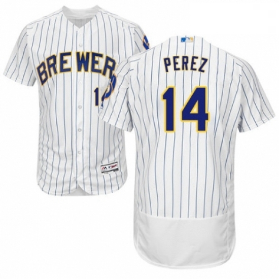 Home>MLB>Milwaukee Brewers>Men>Mens Majestic Milwaukee Brewers 14 Hernan Perez White Home Flex Base Authentic Collection MLB Jersey
