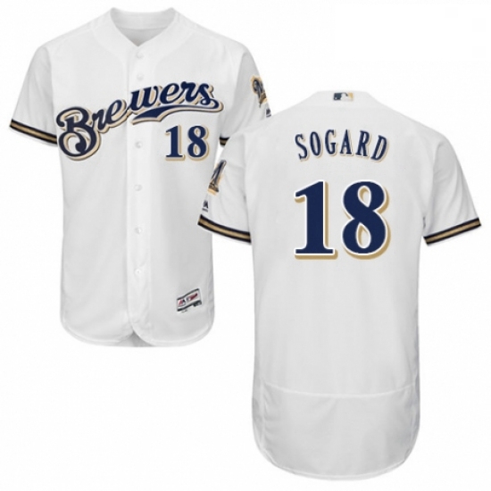 Home>MLB>Milwaukee Brewers>Men>Mens Majestic Milwaukee Brewers 18 Eric Sogard Navy Blue Alternate Flex Base Authentic Collection MLB Jersey