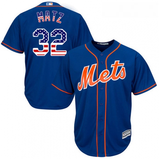 Home>MLB>New York Mets>Men>Mens Majestic New York Mets 32 Steven Matz Replica Royal Blue USA Flag Fashion MLB Jersey