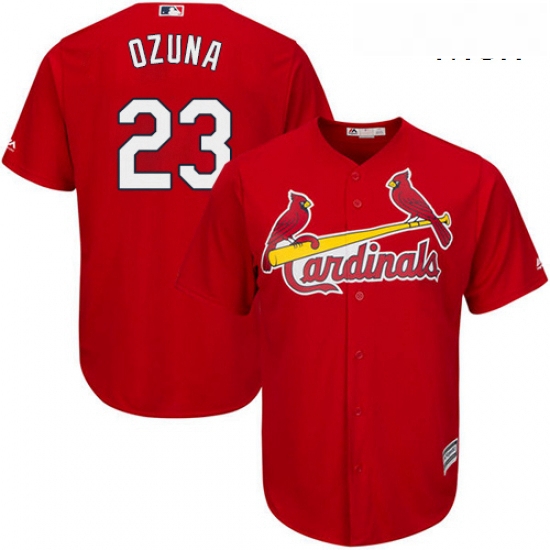 Home>MLB>St. Louis Cardinals>Men>Mens Majestic St Louis Cardinals 23 Marcell Ozuna Replica Red Alternate Cool Base MLB Jersey