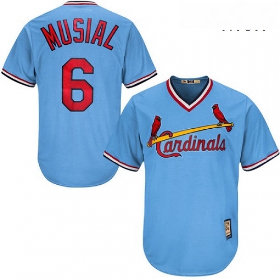 Mens Majestic St Louis Cardinals 6 Stan Musial Replica Light Blue Cooperstown MLB Jersey