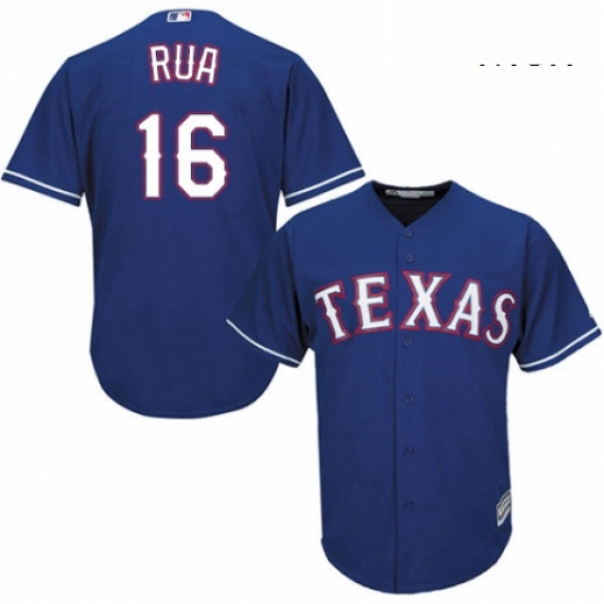 Mens Majestic Texas Rangers 16 Ryan Rua Replica Royal Blue Alternate 2 Cool Base MLB Jersey