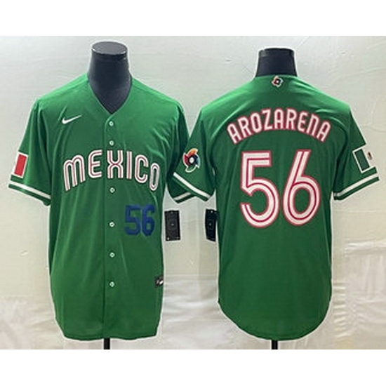 Men's Mexico Baseball #56 Randy Arozarena Number 2023 Green World Classic Stitched Jersey