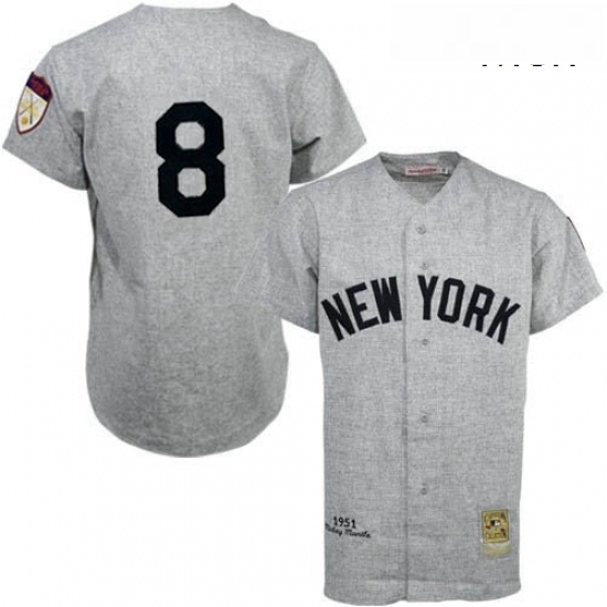 Home>MLB>New York Yankees>Men>Mens Mitchell and Ness 1951 New York Yankees 8 Yogi Berra Authentic Grey Throwback MLB Jersey