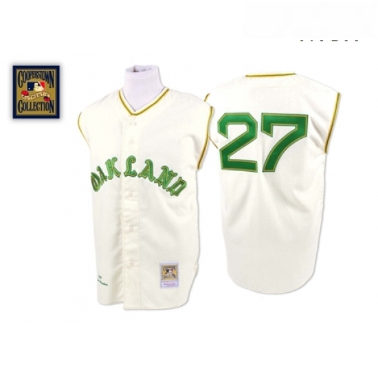 Mens Mitchell and Ness 1968 Oakland Athletics 27 Catfish Hunter Replica Cream Throwback MLB Jersey