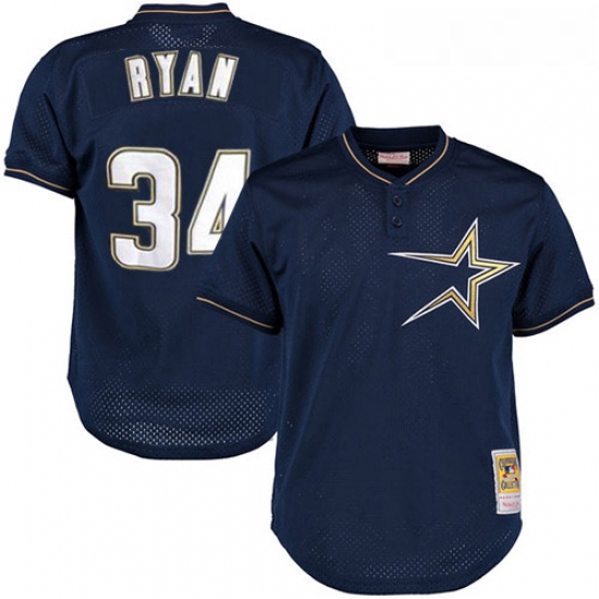 Mens Mitchell and Ness 1997 Houston Astros 34 Nolan Ryan Replica Navy Blue Throwback MLB Jersey