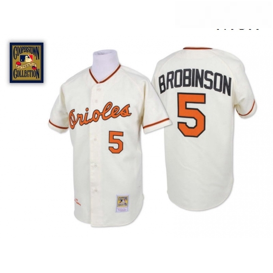 Mens Mitchell and Ness Baltimore Orioles 5 Brooks Robinson Authentic Cream Throwback MLB Jersey