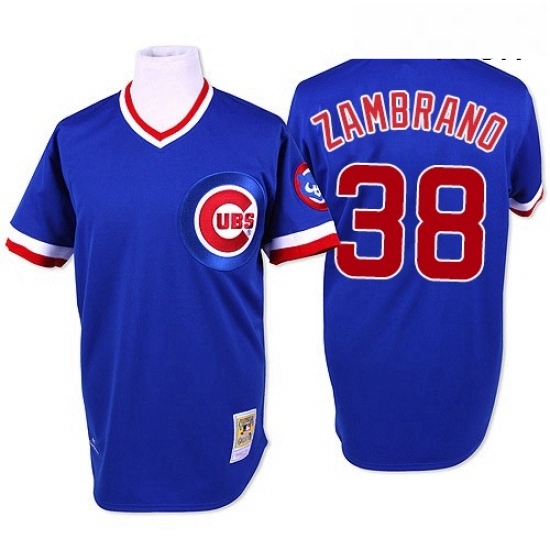 Mens Mitchell and Ness Chicago Cubs 38 Carlos Zambrano Replica Blue Throwback MLB Jersey