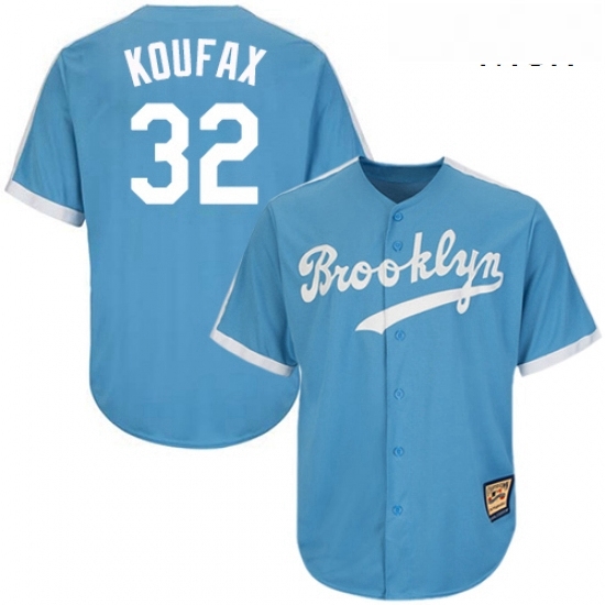 Mens Mitchell and Ness Los Angeles Dodgers 32 Sandy Koufax Authentic Light Blue Throwback MLB Jersey