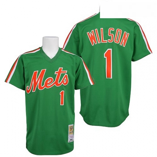 Home>MLB>New York Mets>Men>Mens Mitchell and Ness New York Mets 1 Mookie Wilson Authentic Green Throwback MLB Jersey