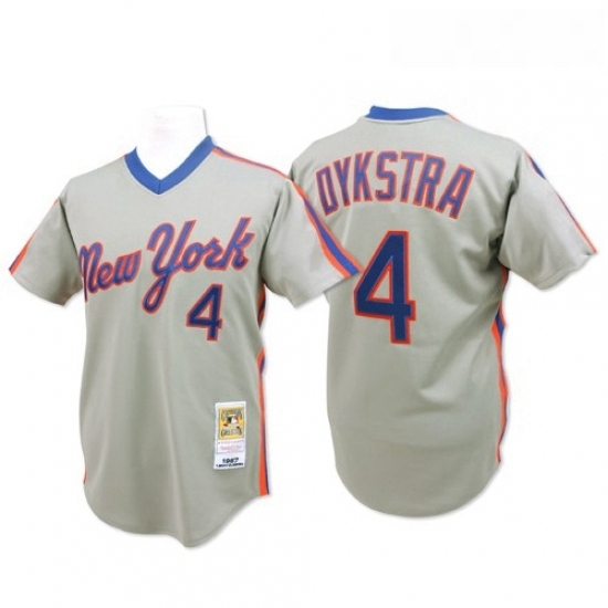 Mens Mitchell and Ness New York Mets 4 Lenny Dykstra Authentic Grey Throwback MLB Jersey