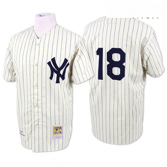 Home>MLB>New York Yankees>Men>Mens Mitchell and Ness New York Yankees 18 Don Larsen Replica White Throwback MLB Jersey