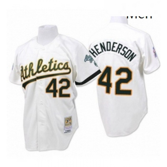Home>MLB>Oakland Athletics>Men>Mens Mitchell and Ness Oakland Athletics 42 Dave Henderson Replica White Throwback MLB Jersey