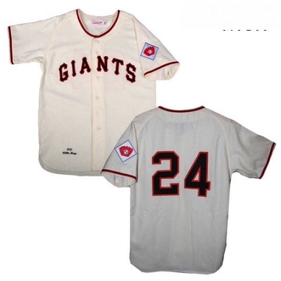 Home>MLB>San Francisco Giants>Men>Mens Mitchell and Ness San Francisco Giants 24 Willie Mays Authentic Cream 1951 Throwback MLB Jersey