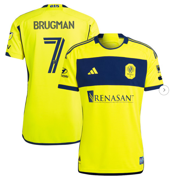 Home>Soccer>MLS Soccer Jerseys>Nashville SC>Mens Nashville SC Gastón Brugman adidas Yellow 2024 The 615 Kit Authentic Player Jersey