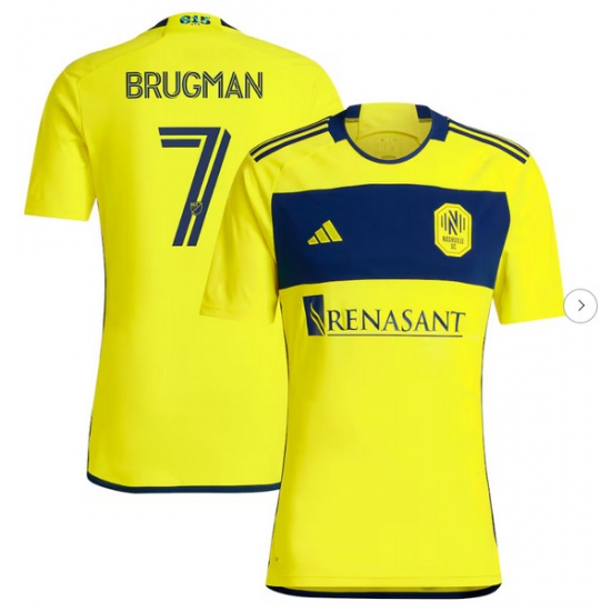 Home>Soccer>MLS Soccer Jerseys>Nashville SC>Mens Nashville SC Gastón Brugman adidas Yellow 2024 The 615 Kit Replica Player Jersey