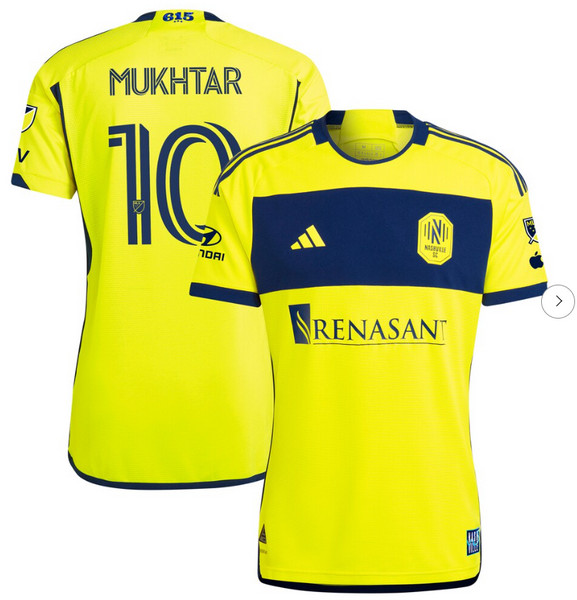 Home>Soccer>MLS Soccer Jerseys>Nashville SC>Mens Nashville SC Hany Mukhtar adidas Yellow 2024 The 615 Kit Authentic Player Jersey