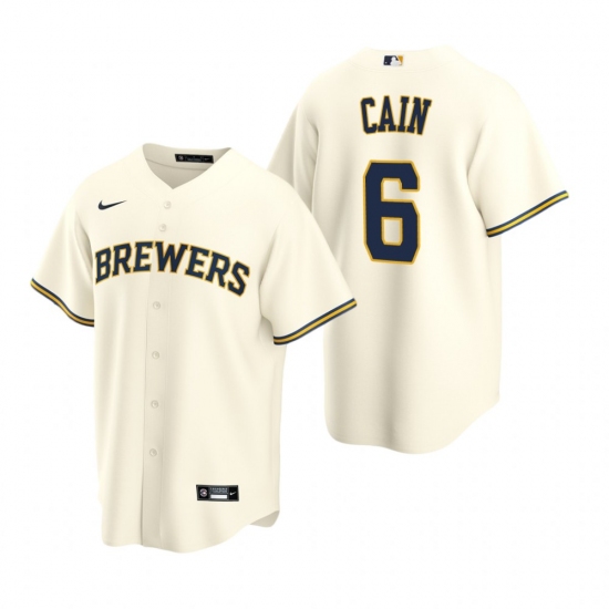 Home>MLB>Milwaukee Brewers>Men>Mens Nike Milwaukee Brewers 6 Lorenzo Cain Cream Home Stitched Baseball Jersey