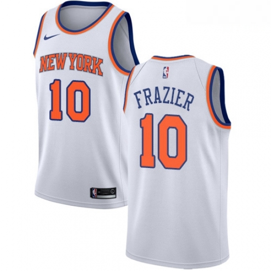 Mens Nike New York Knicks 10 Walt Frazier Authentic White NBA Jersey Association Edition