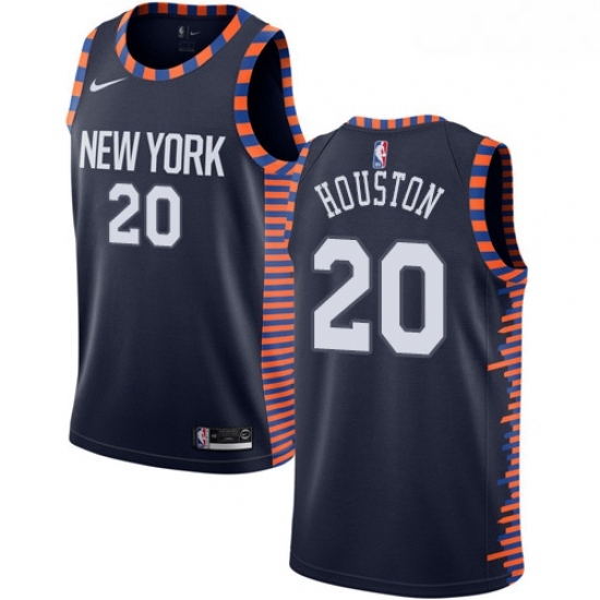 Mens Nike New York Knicks 20 Allan Houston Swingman Navy Blue NBA Jersey 2018 19 City Edition