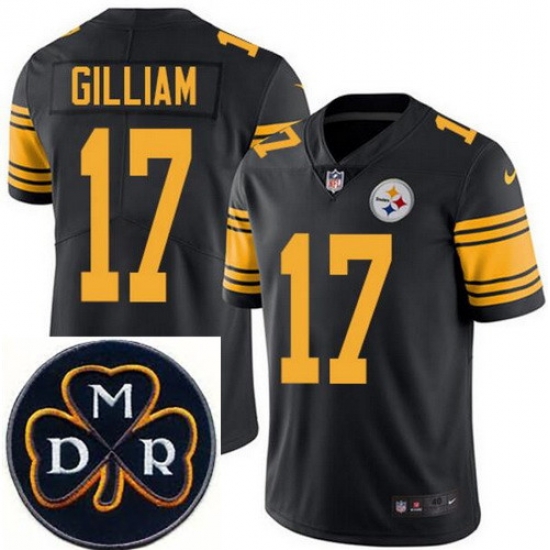 Home>NFL>Pittsburgh Steelers>Men>Men's Nike Pittsburgh Steelers #17 Joe Gilliam Elite Black Rush NFL MDR Dan Rooney Patch Jersey