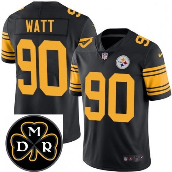 Home>NFL>Pittsburgh Steelers>Men>Mens Nike Pittsburgh Steelers 90 T J Watt Limited Black Rush Vapor Untouchable NFL MDR Patch Jersey